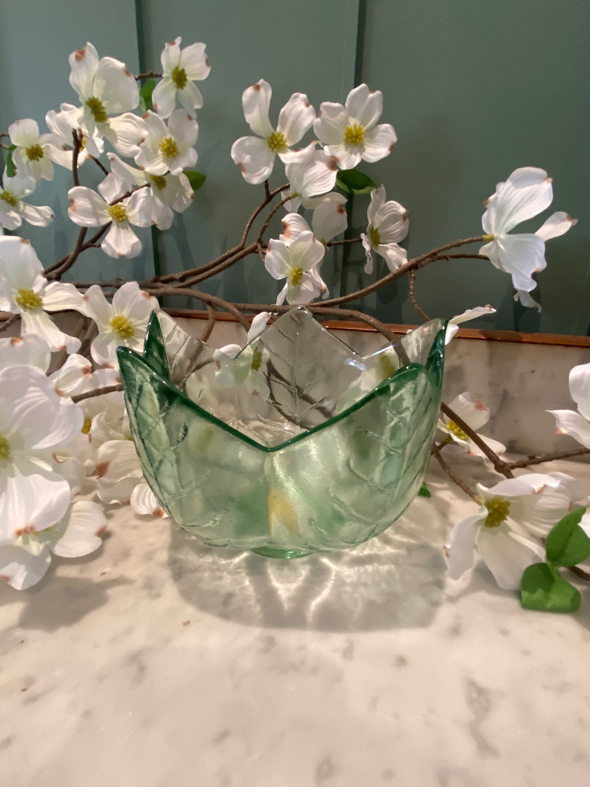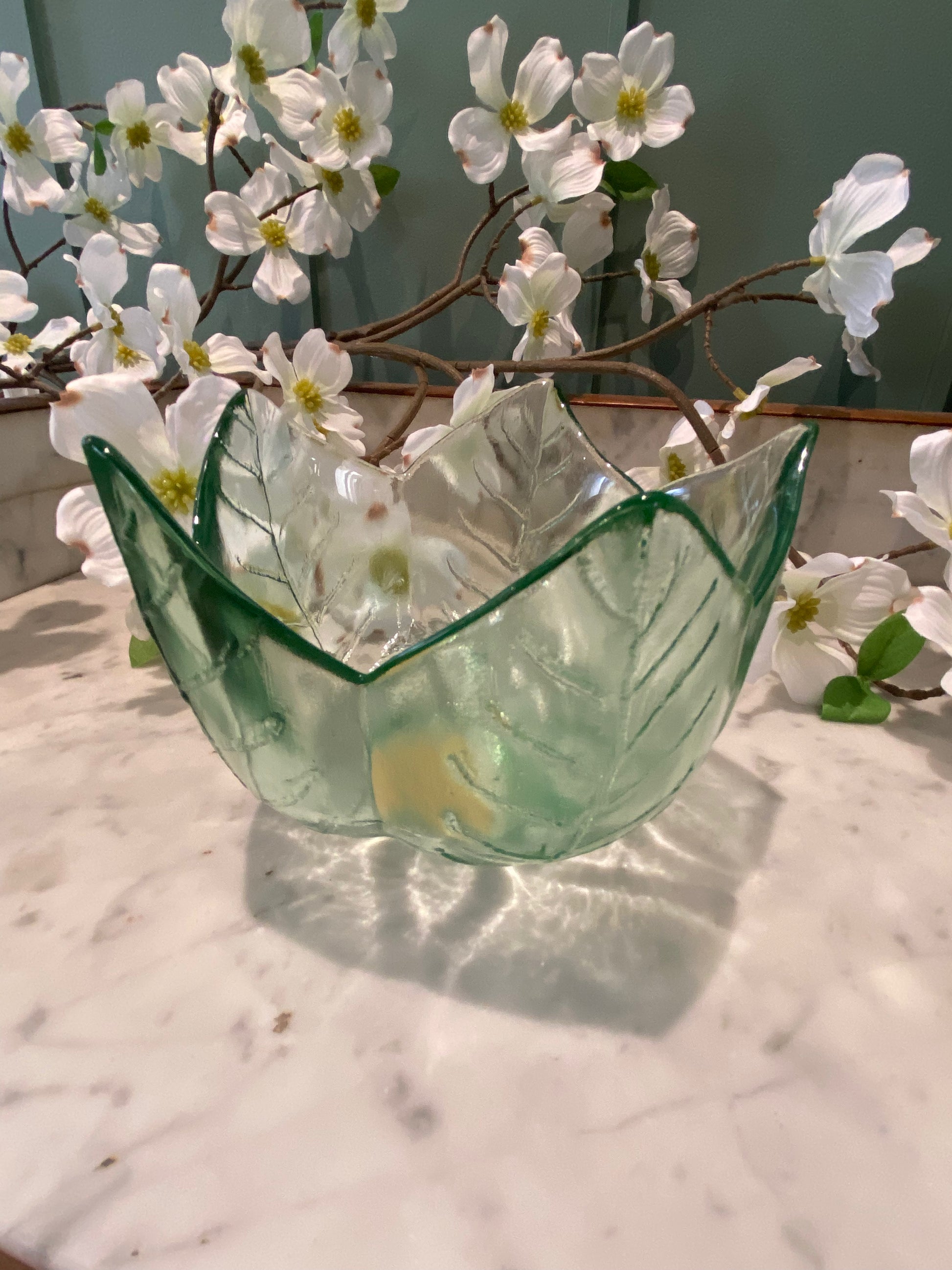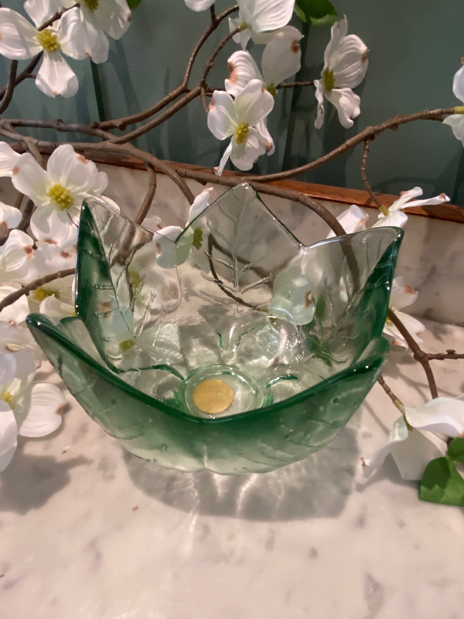 Bol en verre épais – Décor fleur et feuille