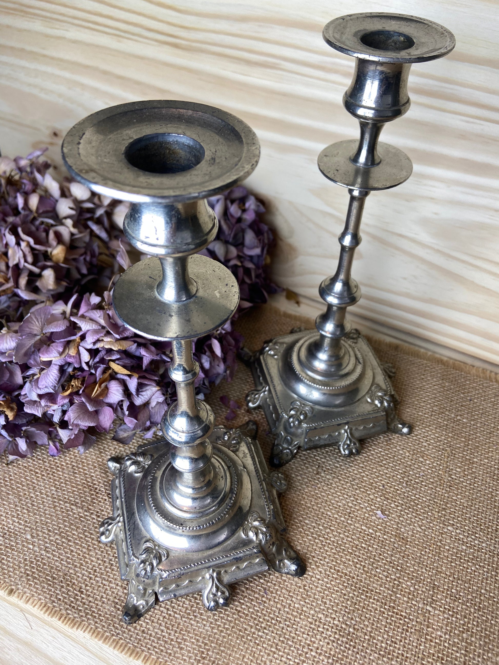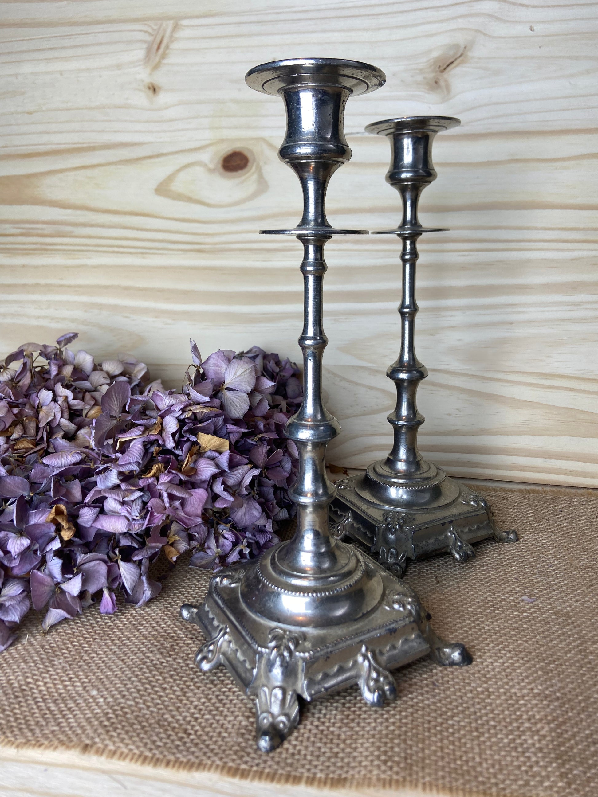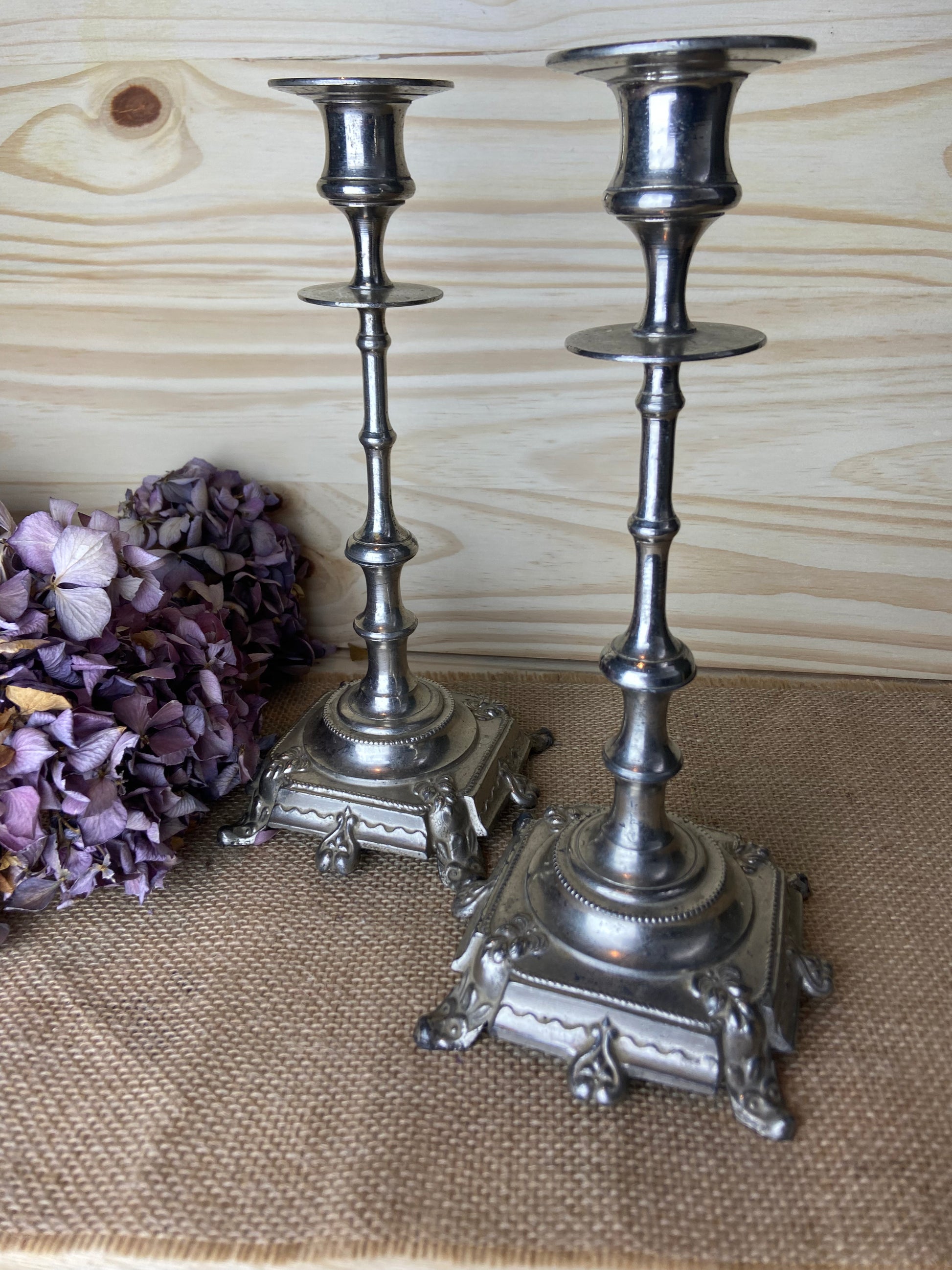 Paire de bougeoirs en métal argenté – Élégance raffinée et intemporelle