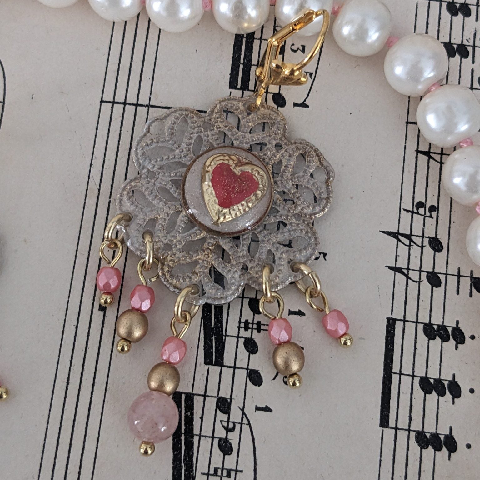La paire de boucles d’oreilles « Artistic heart » présente des pièces peintes, assemblées et incrustées dans de la résine. Une création minutieuse, imaginée et créée à la main, qui ravira les amatrices de bijoux fantaisie et de couleurs!