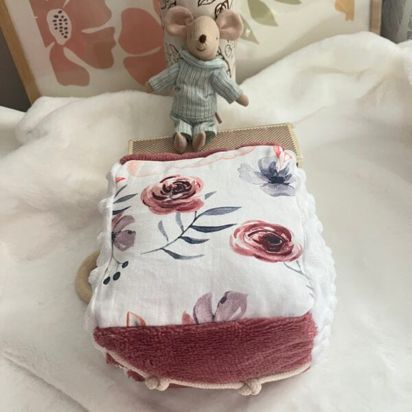 Tissu coton premium imprimé, tissu tout doux rose et minky blanc.