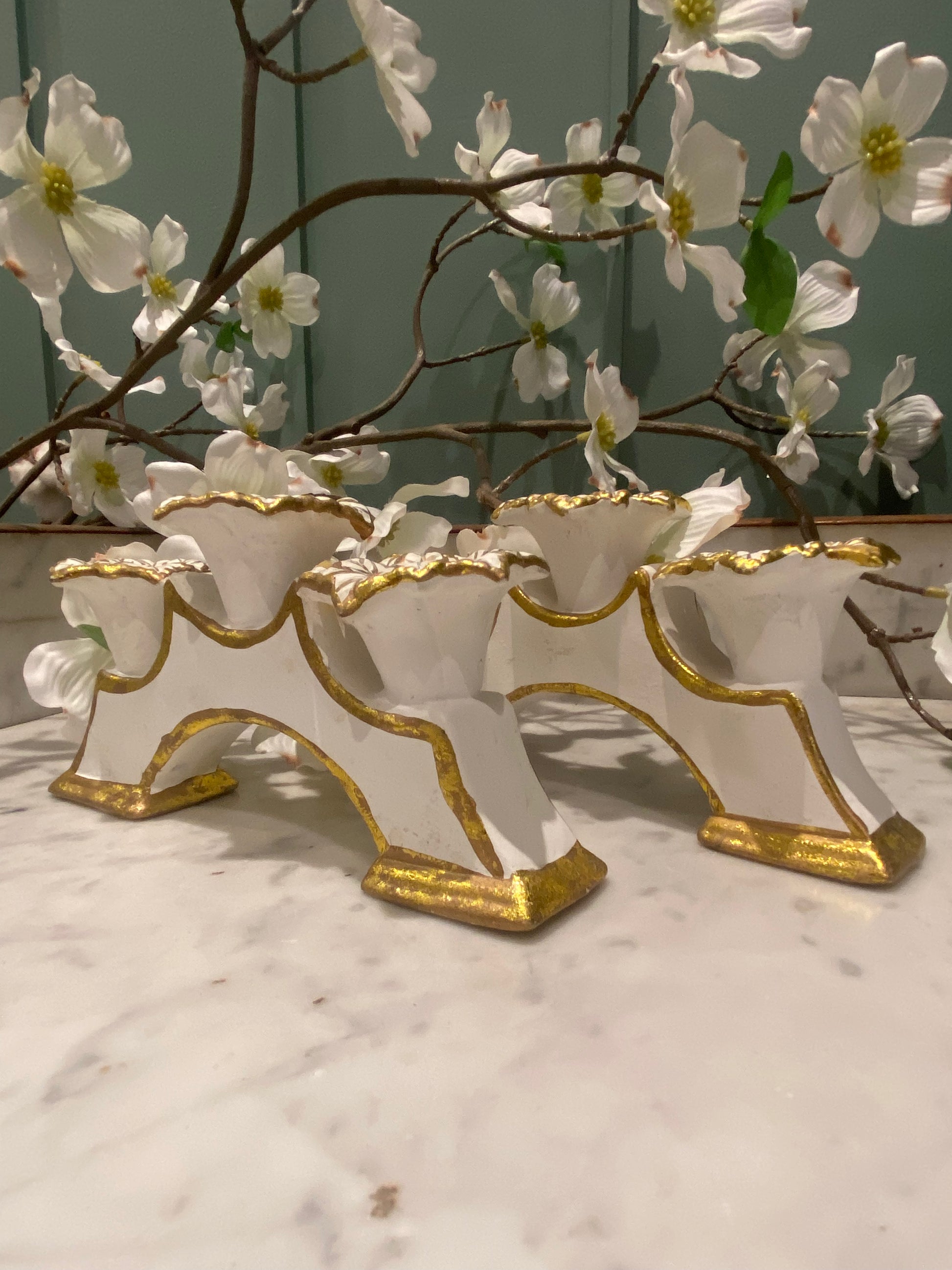 Duo de chandeliers en céramique – 3 bougies, blanc et doré