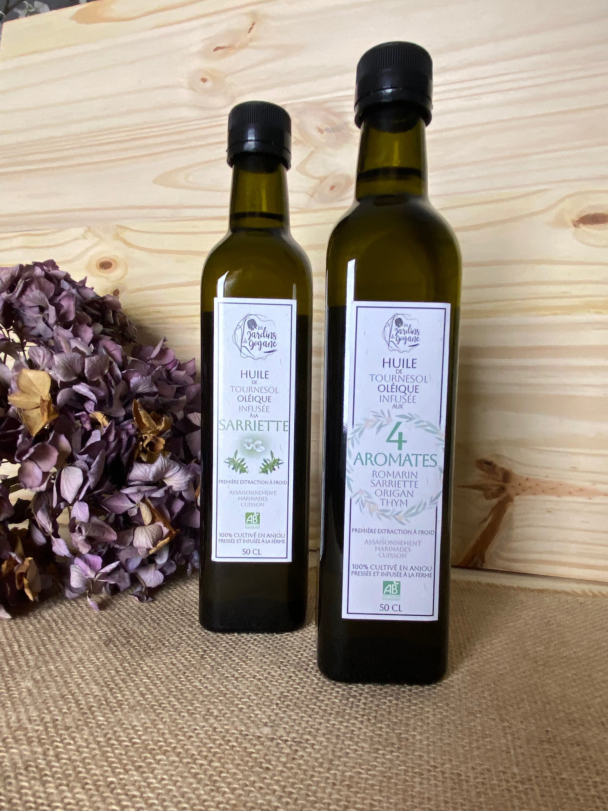 Nous cultivons le tournesol Oléique, la sarriette, les aromates sont cultivés en Anjou.
