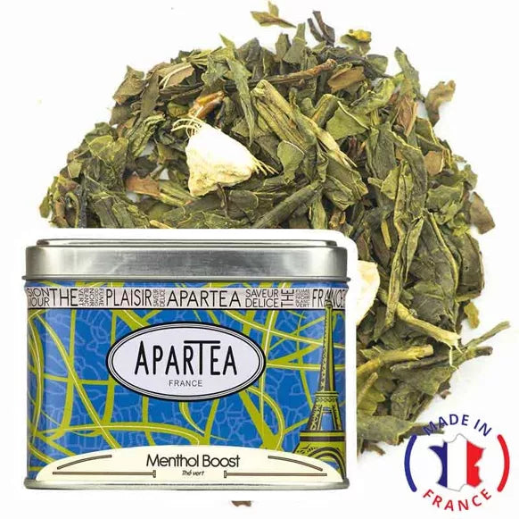 Ce thé est pour toi ! tu seras te reconnaître ! Rappelles toi quand nous étions encore jeunes, cette saveur de menthe qui embaumait toute notre maison et qui avait pour effet de nous dynamiser en 1 instant. Ce thé vert Menthol Boost à base de gingembre, de menthe poivrée, cardamome vert, de fenouil, de poivre et clou girofle saura vous donner le coup de fouet donc vous avez besoin pour vous réveiller ou vous préparer à une séance sportive haute en intensité.