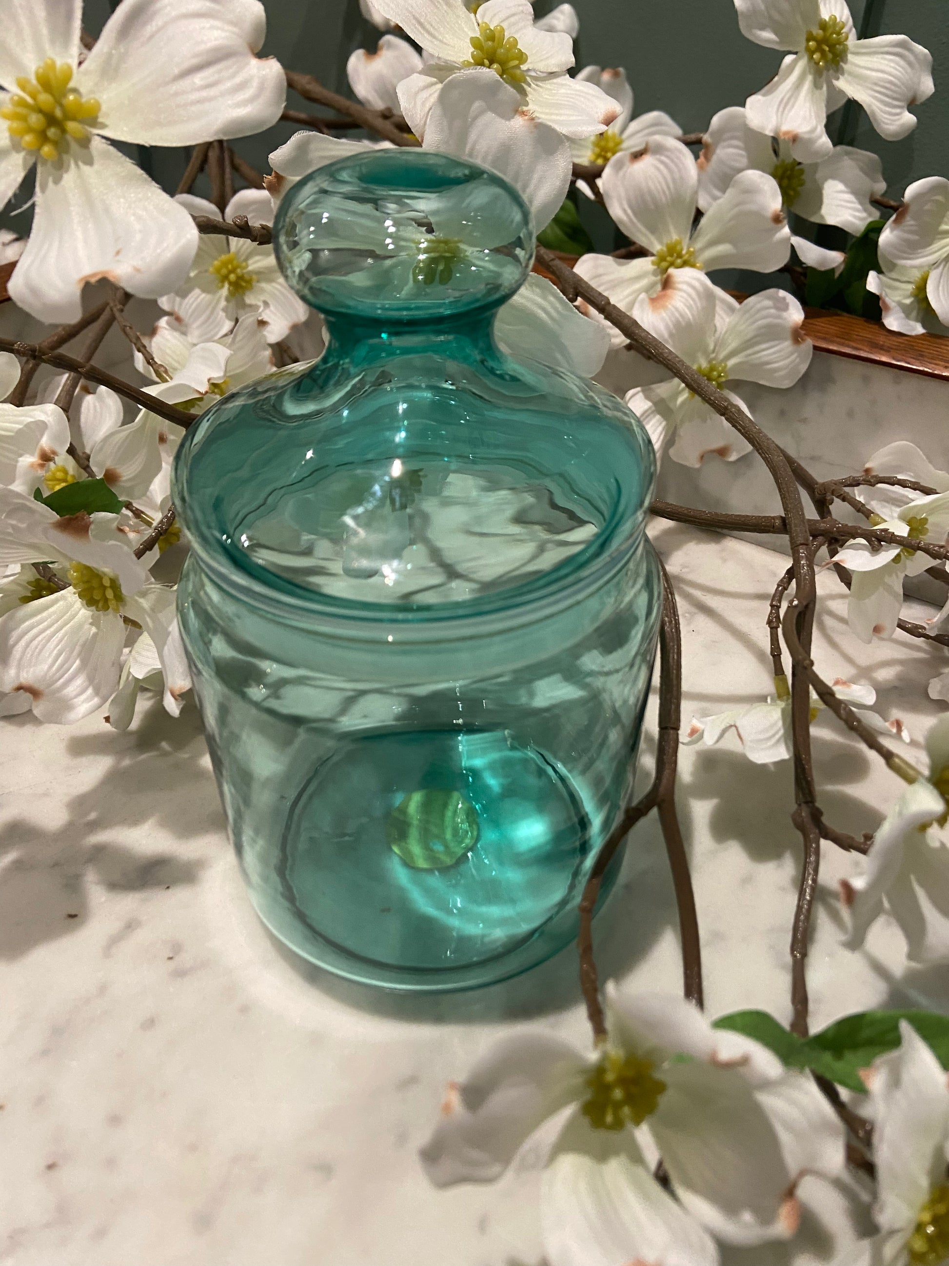Petite bonbonnière en verre bleu/vert – Élégance vintage et décorative