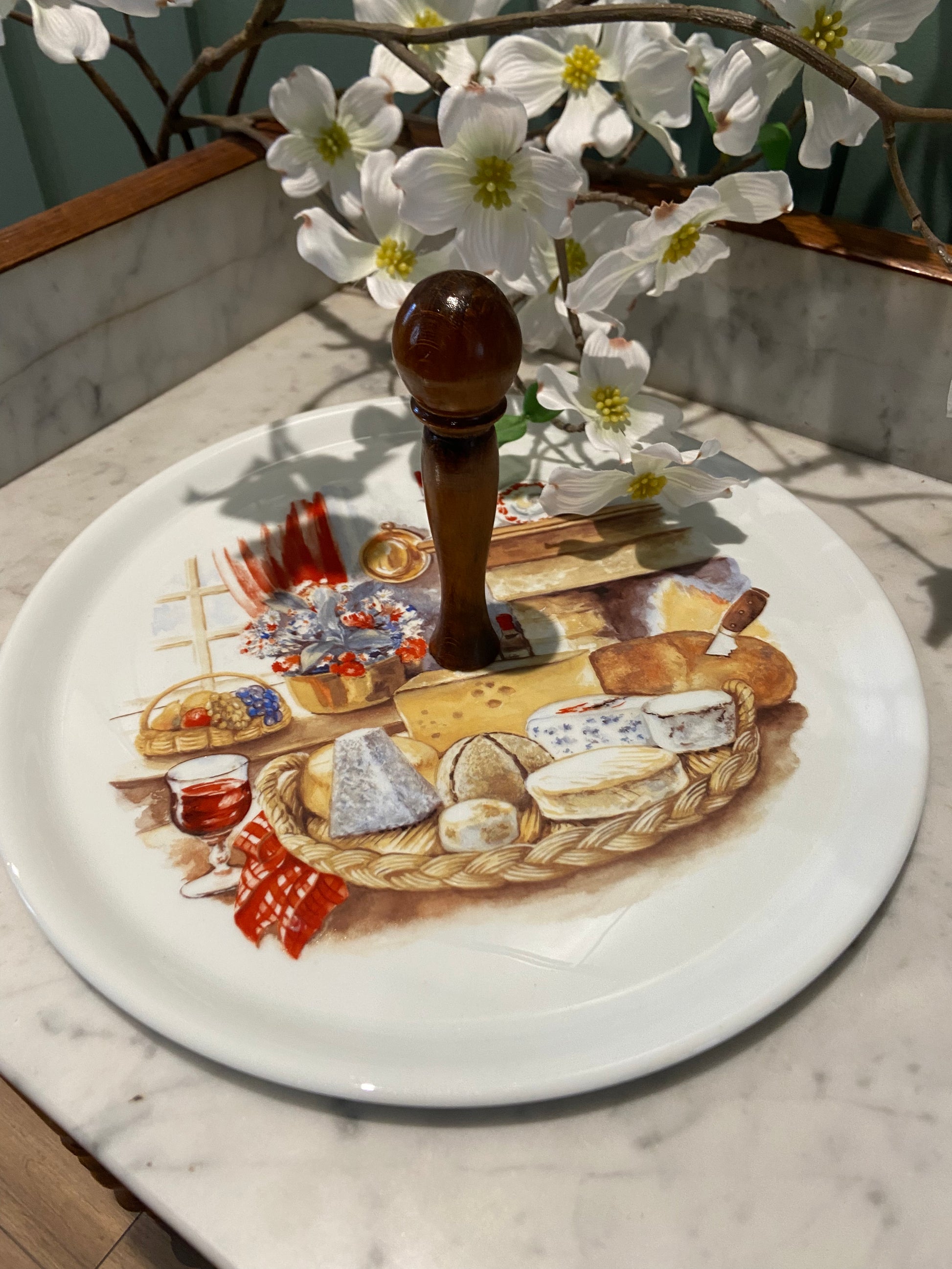 Plateau à fromage vintage – Décor rétro & manche en bois