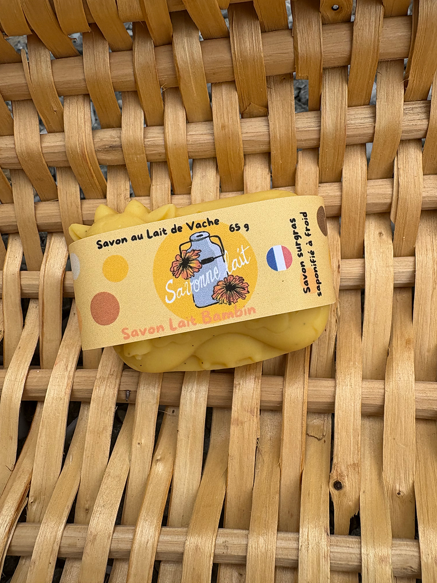 Un savon parfait pour les enfants, sans parfum, à base de macérat de vanille, il maintiendra l'hydratation de la peau. Il sera aussi parfait pour les personnes ayant des allergies.Pour plaire aux bambins il est dans une forme de petite vache ou en nuage.
